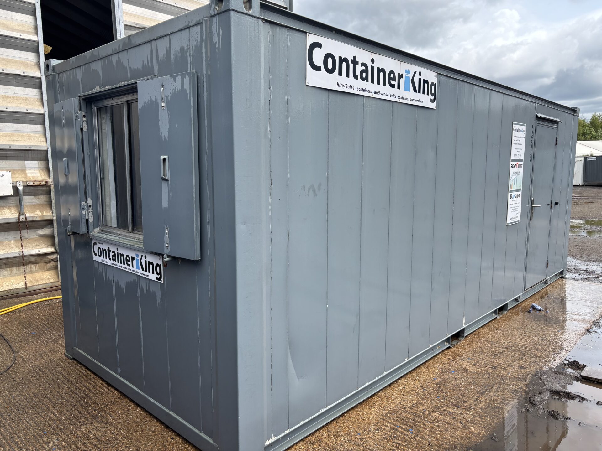 ContainerKing® anti-vandal cabin “CK/Plan” range of 20ft x 8ft units are the perfect solution when you are working off/on site or you need office/workspace to accommodate additional staff on your existing premises. The benefit of being constructed in steel with a steel external multi-locking door and insulated steel window shutters provides enhanced security and gives peace of mind to users as our cabins offer resistance against theft and vandalism. Portable anti-vandal cabins are regularly used for example as temporarily as temporary and permanent site offices | canteens | toilets | changing rooms. At ContainerKing® / rent-a-unit we offer various choice in the internal layout of ContainerKing® / rent-a-unit anti-vandal cabins including portable offices as open plan or partitioned forming separate working areas. A popular choice is to have the cabin split internally to form: