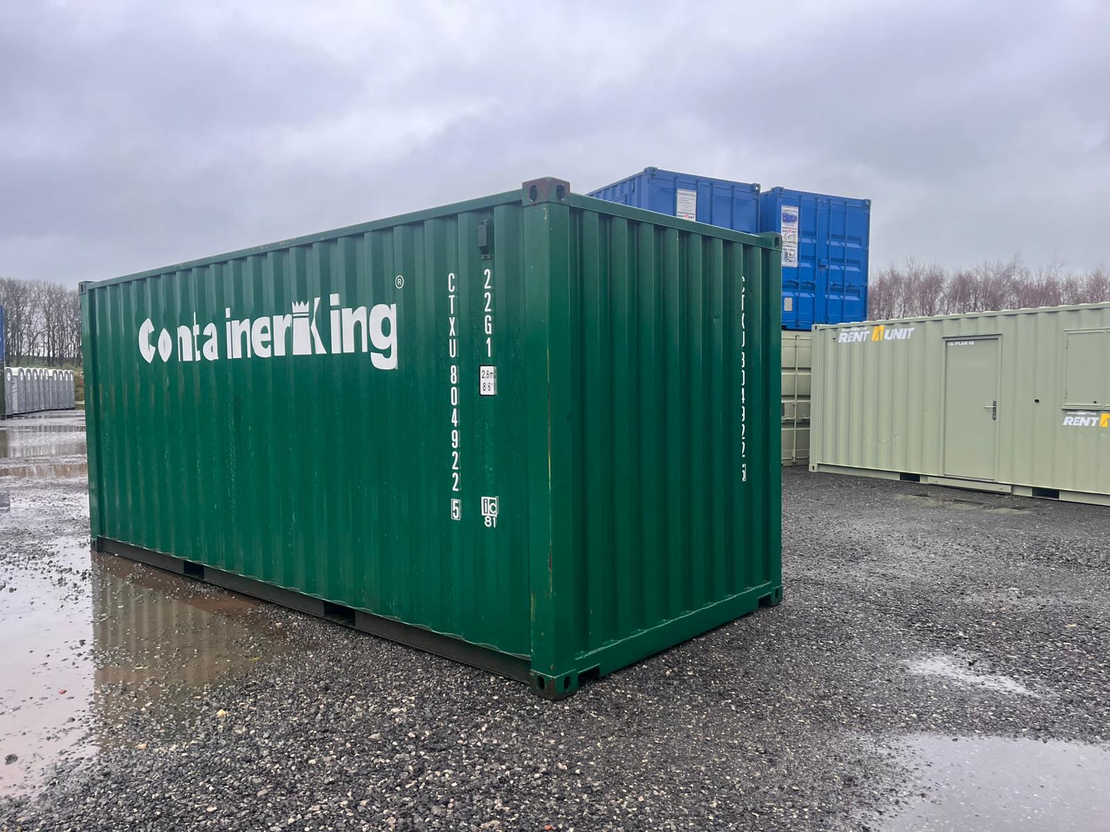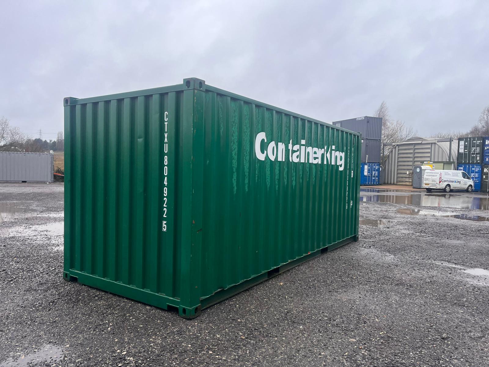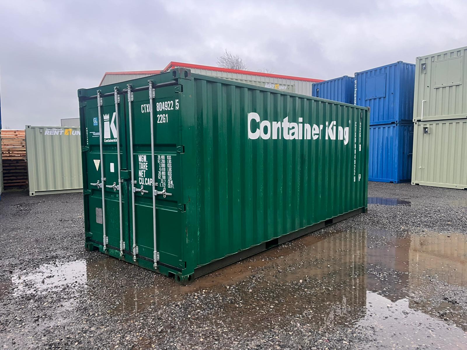 This standard ISO 20ft x 8ft one-trip shipping container (with polyurethane anti condensation ceiling) is presented in excellent condition and finished in a smart green exterior, making it an ideal choice for customers who want secure storage that still looks professional on site.
