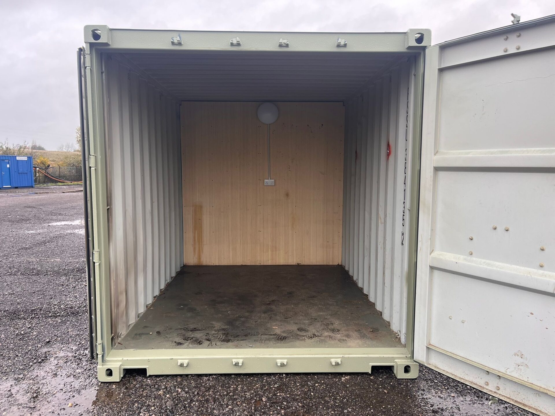 This is one of the newer units in our modern fleet of steel anti-vandal buildings which is sprayed in container standard Gential Blue RAL5010. With a 32A appliance inlet fitted which is linked directly to the internal consumer unit providing the power to the LED ceiling lighting and sockets generously located around the office area and located in the storage area along with a bulkhead light. ISO Shipping Containers are fabricated with Multi corrugated 1.6mm Corton steel. With standard double doors into the storage area which like mentioned above has the benefit of a double socket and very convenient bulkhead light which we fit as standard on new build container conversions.