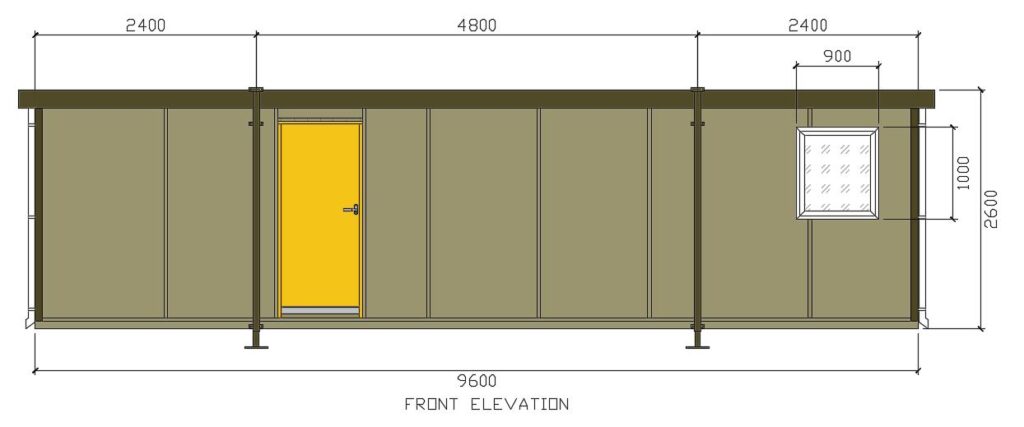 32ft x 10ft Units – 80mm/90mm mild steel telescopic single pack sprayed in Olive Green B/S 12B27 satin finish